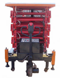 在剪叉式高空作業(yè)臺(tái)基礎(chǔ)上增加自行走功能,移動(dòng)時(shí)由液壓馬達(dá)驅(qū)動(dòng)升降臺(tái)行走,人工轉(zhuǎn)向。行走及升降臺(tái)均為直流電源動(dòng)力。選型可參考剪叉式高空作業(yè)臺(tái)。